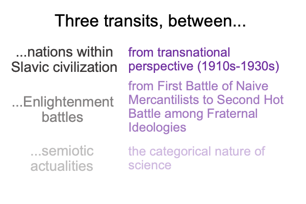 0044 Russian and Polish formalists are already reacting to the civilizational conditions of the first Battle among the Enlightenment gods.  Science catches the eye of both Mukarovsky and Jakobson.  They move towards integrating semiology into the study of literature.