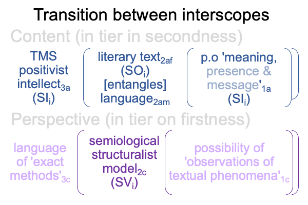 Can the reader see a triadic relation where a semiological3a structuralist3b model2c (SVi) stands for a literary text as form2af (SOi) potentiated by meaning1a, presence1b and message1c in the normal context of a defining intellect (SIi)?