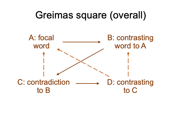 0025 The Greimas square operates on four rules, each corresponds to a corner of the square.