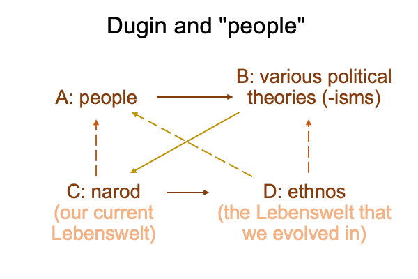 Dugin emphasizes this. The narod emerges from the ethnos. The narod cannot return to its ethnos.