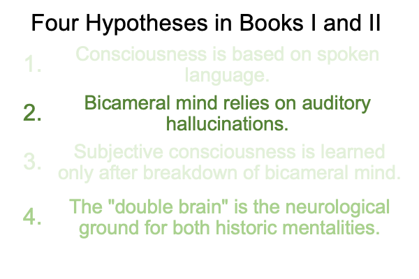 No, the term, “auditory hallucination”, is a projection of modern sensibilities onto subject matter that… well… may be too disturbing to discuss. What if the casual dismissal of Jaynes’s four-strand thesis could be played back, in the mind of a modern objector, in the voice of a well-regarded psychology professor. You know the one that I am referring to. Just look at all the awards on display in the office. What if…