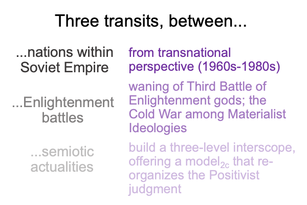 0218 Of course, the initial advantage offered by a remake of the Positivist’s judgment comes from the fact that inquiry into cybernetics3b is ready-at-hand to virtually situate the Tartu-Moscow School of Structuralism and Semiology as a positivist intellect3a.