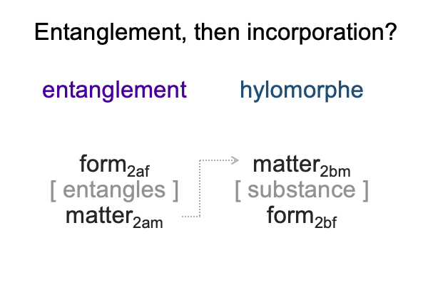 0238 As if to certify that the focus of inquiry shifts from structuralist things to cultural things2b, consider Aristotle’s hylomorphe and entanglement as exemplars of the Peirce’s category of secondness.