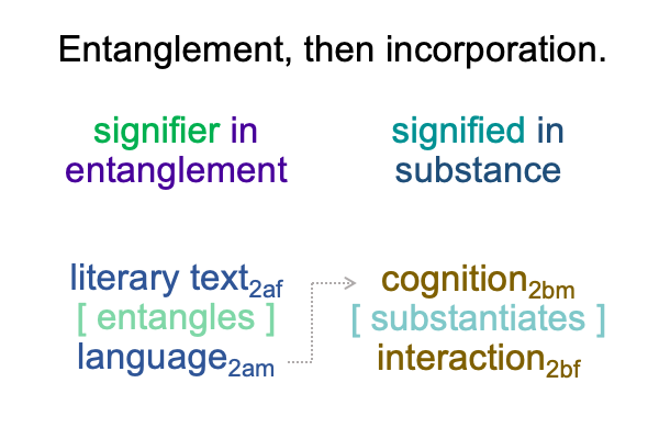 0232 On the content level, the contiguity between a literary text as form2af and a language of aesthetics as matter2am,is [entangled].